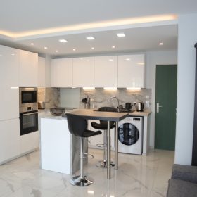 - Kitchen includes microwave, oven, coffee machine and dishwasher