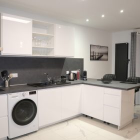 • Kitchen includes microwave, oven and dishwasher