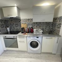 - Washing machine, clothes dryer and TV included