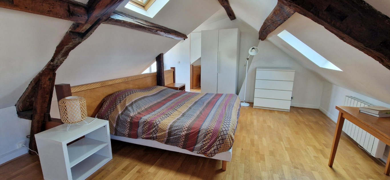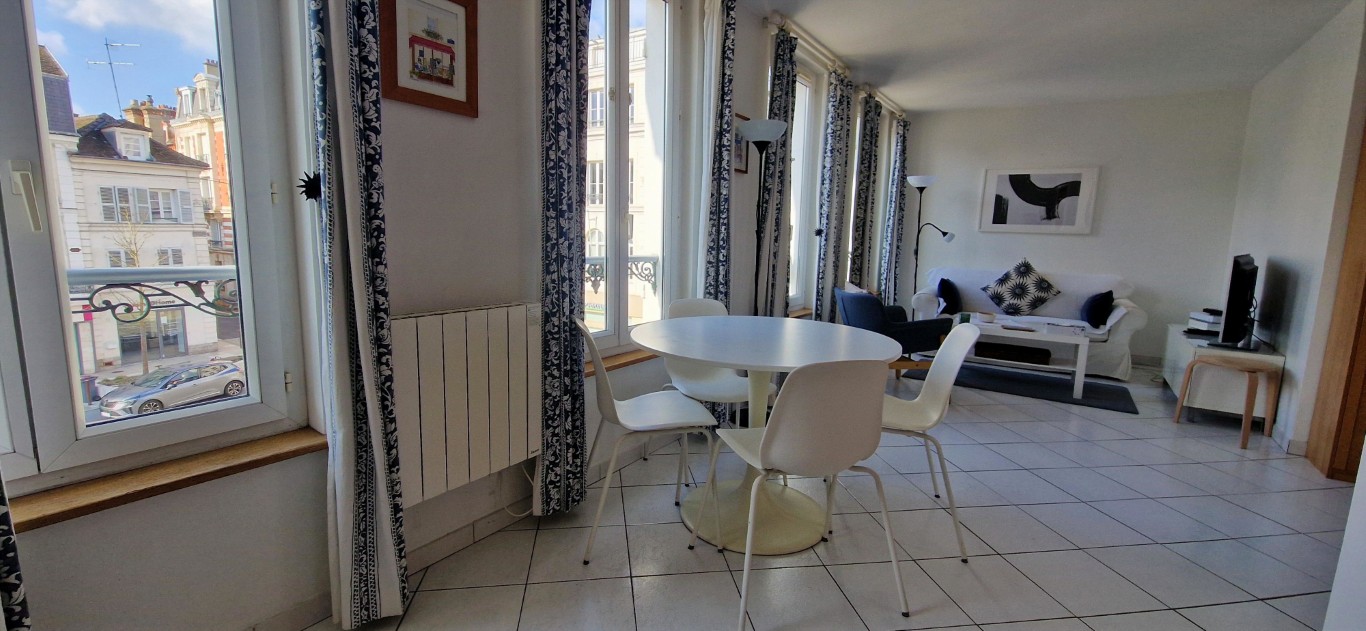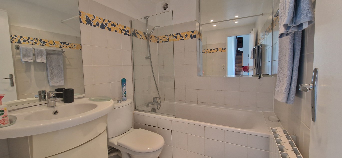 For your everyday comfort and convenience, a full bathroom – shower, bathtub, washbasin and toilet – is located on the lower floor. With supermarkets, cafés, shops, and all essential amenities just steps away, this duplex is perfectly positioned for modern, easy living in a vibrant and historic part of Fontainebleau.