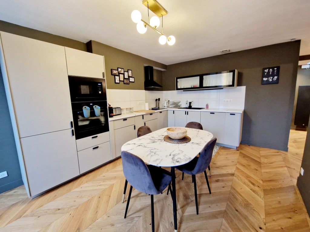 The apartment opens into a generous living area, seamlessly connected to a spacious dining zone and a fully furnished kitchen—perfect for entertaining, studying, or relaxing after a busy day. Two well-proportioned bedrooms provide ample storage and a calm retreat, while a contemporary shower room includes a washing machine and clothes dryer for added convenience. Additional storage space ensures that everything has its place, making the apartment both functional and comfortable.