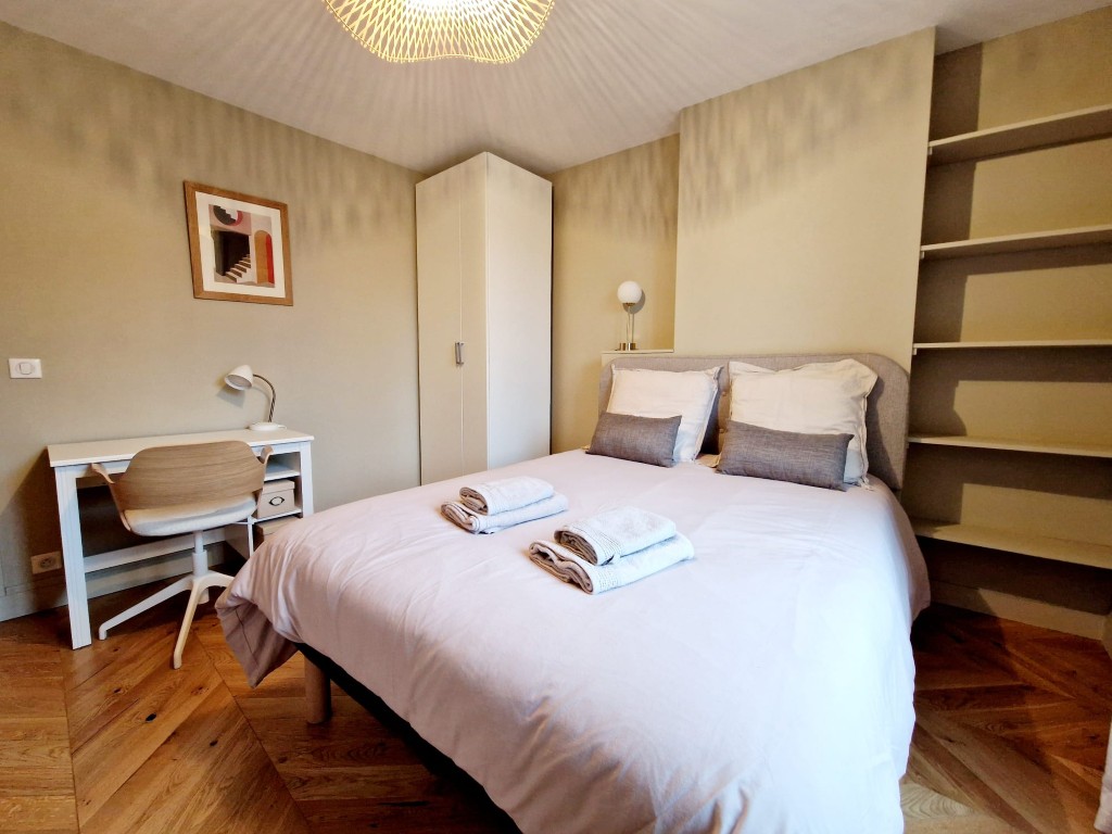 Bathed in natural light, Jardin du Diane is ideal for INSEAD students seeking a stylish and practical home at the top of the building. Its unique layout, abundant space, and modern amenities make it a perfect base for academic life in Fontainebleau, offering both privacy and a sociable living environment.