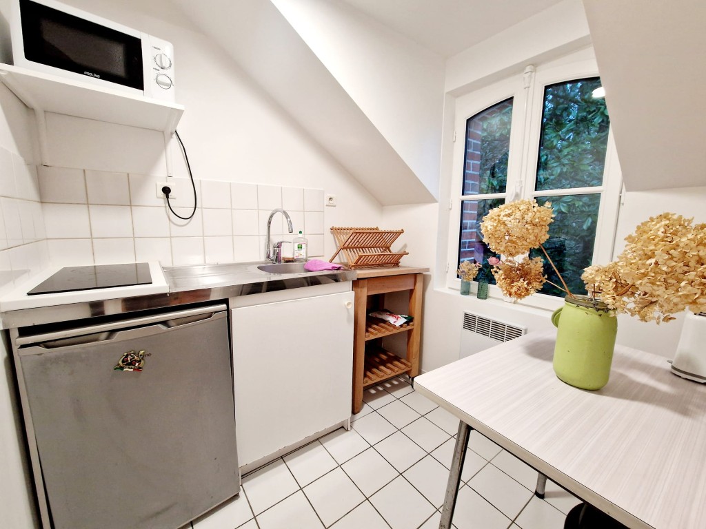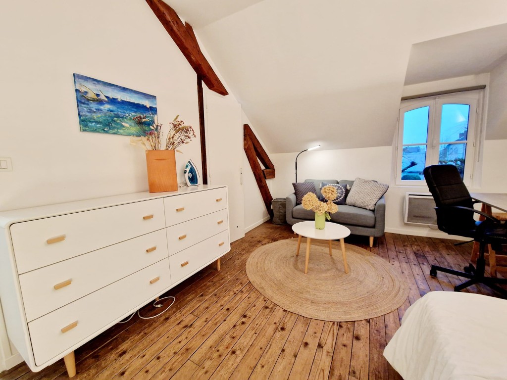 La Petite Écuries is a delightful and cosy studio apartment situated above the property’s historic stables, within the peaceful garden of the landlord’s residence. Completely independent, the studio shares only the main garden entrance with the landlord and enjoys a quiet position at the rear of the garden, providing a pleasant open outlook and a serene atmosphere.