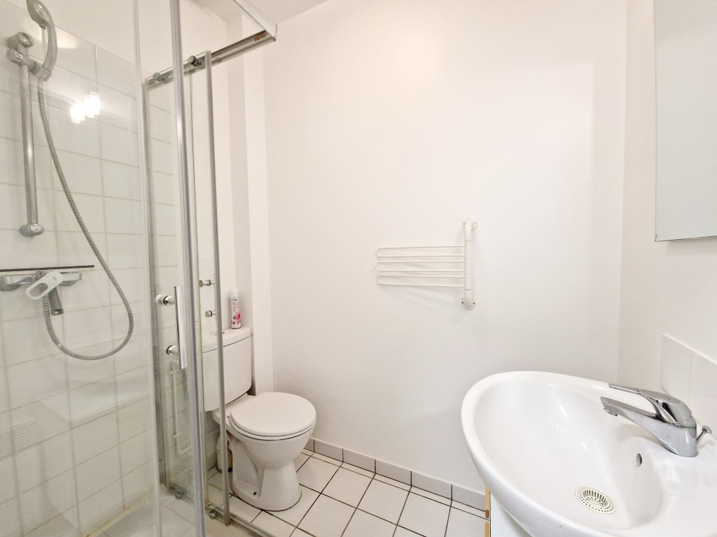 Accessed via a short flight of stairs, the apartment opens into a small entrance hall where the shower room is conveniently located. Beyond this, the main living space unfolds into a bright, thoughtfully arranged area that combines comfort and practicality. The dedicated study corner provides an ideal workspace, while the comfortable sofa invites you to relax or enjoy a good book. The sleeping area is neatly integrated into the room, creating a warm and restful environment.