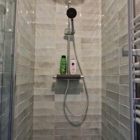 The bedroom has a calm and relaxing ambience and is a cosy retreat from the bustling town, overlooking a quiet area. Additionally, the flat boasts a separate laundry room housing a washing machine with a dryer and all necessary cleaning equipment and materials. Ample storage space is available for your belongings, ensuring a clutter-free, well-organised living environment. Another additional convenience is the separate WC with wash basin, especially when you have guests.