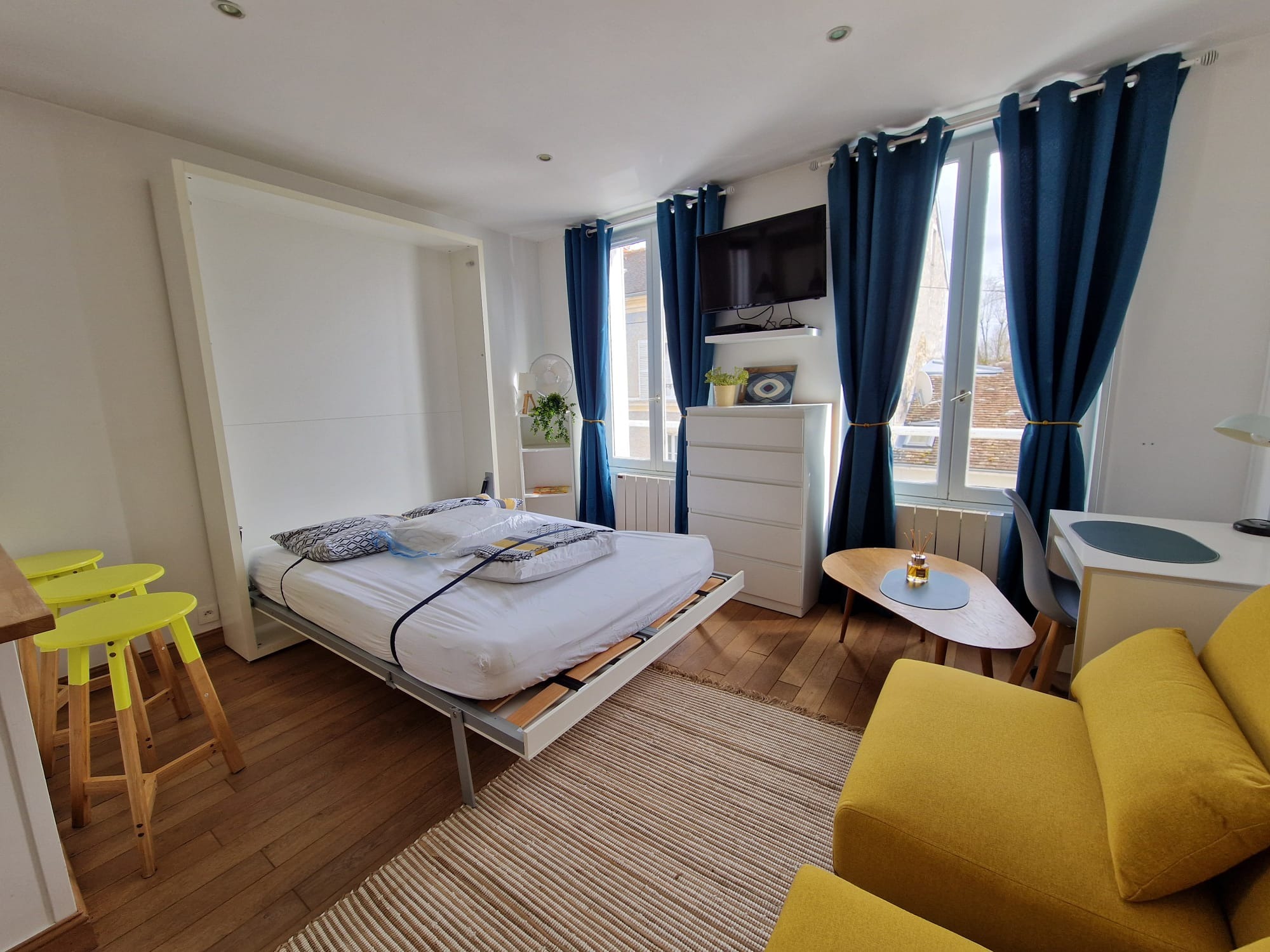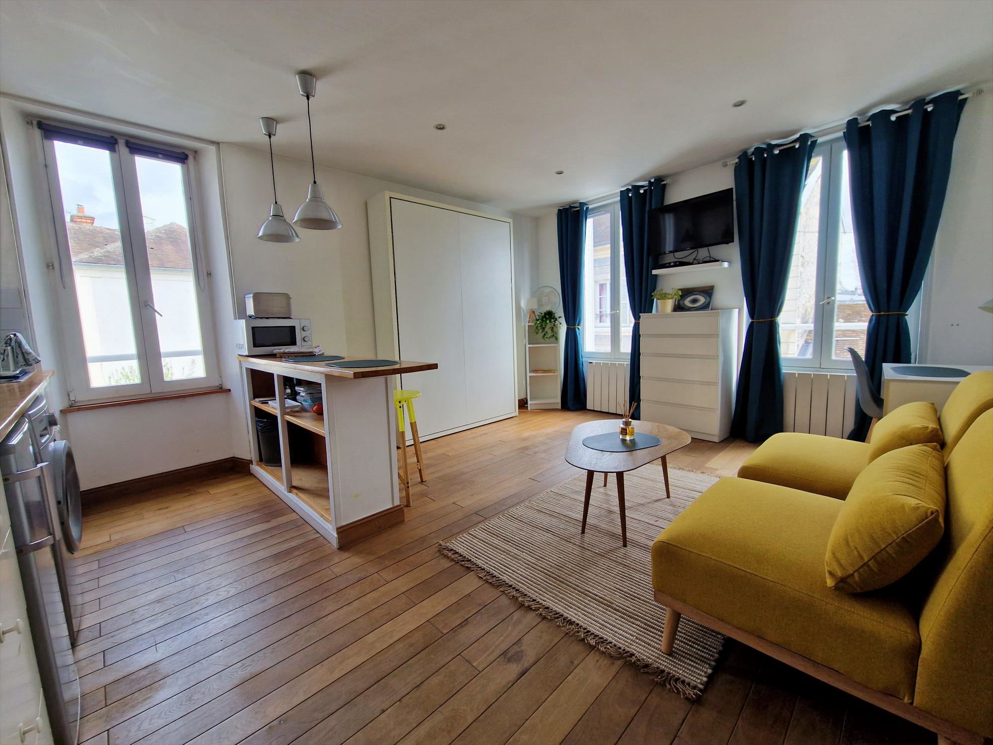 Studio Solaris – Sun-filled Living in Fontainebleau: Recently renovated and filled with natural light, Studio Solaris offers a bright and welcoming living space just 10 minutes from the INSEAD campus and equally close to the town centre. Situated on a quiet residential street, the studio provides a peaceful atmosphere – ideal for focused work and relaxed living.