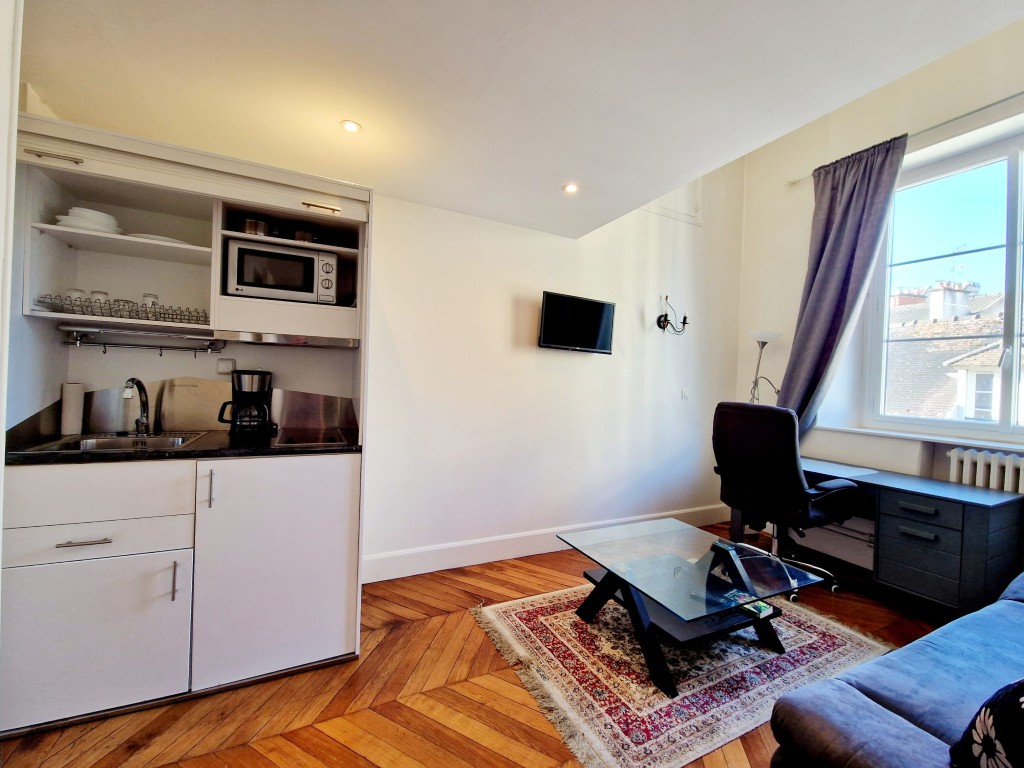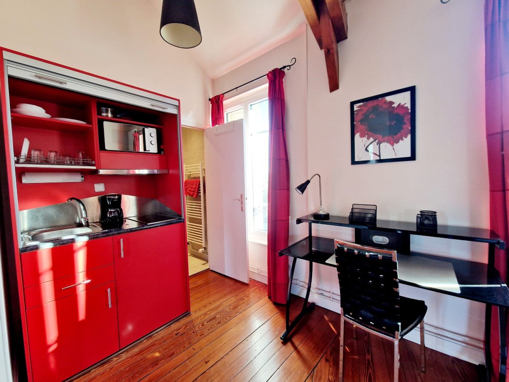 Suite 2 : Includes a private kitchenette, a comfortable living area, a spacious bedroom with dedicated study area, and a generous bathroom.